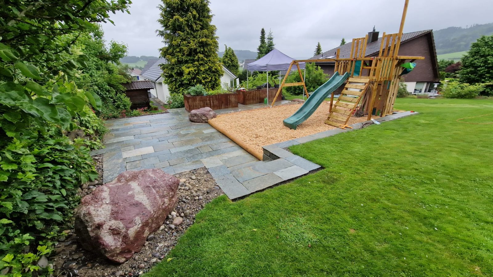 Ob klein oder etwas grösser, mit viel Liebe zum Detail planen und gestalten wir Gartenanlagen. Wir bauen für Sie Sitzplätze, Wege, Treppen und Trockenmauern, die Ihren Garten zu einer Wohlfühloase machen. Wir verwirklichen Elemente wie Pergolen, Hochbeete und Spaliere ‒ und auch Teiche und Biotope gehören zu unserem Repertoire. Die Schaffung vielfältiger Lebensräume ist uns dabei sehr wichtig und wir verwenden dabei hochwertige und möglichst regionale Materialien.